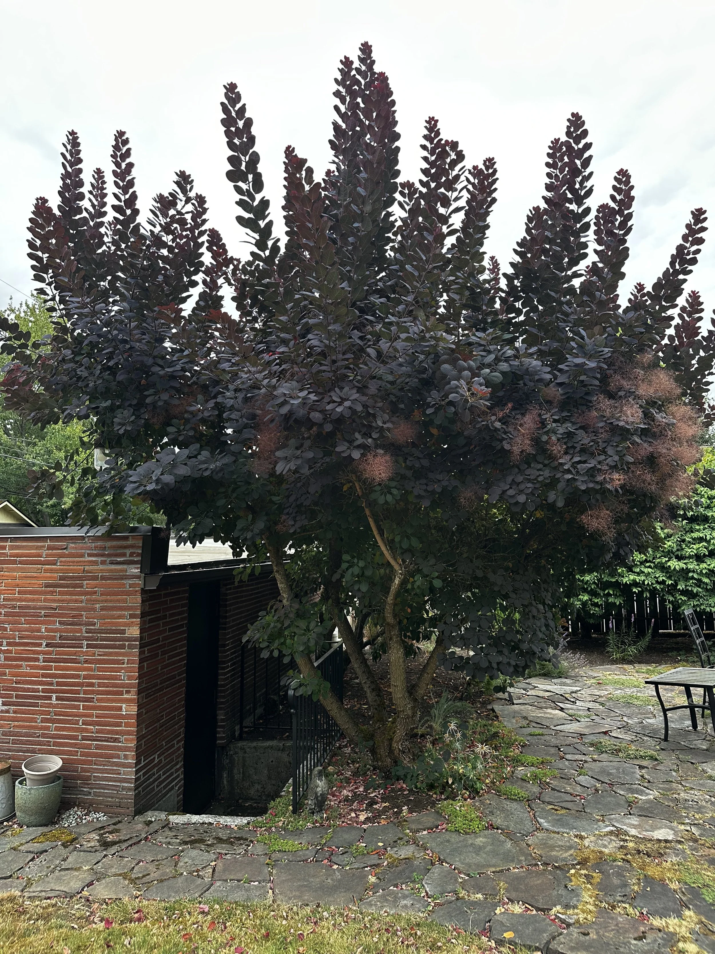Form: Large shrub with deep purple foliage and cloudlike “smoke” blooms.