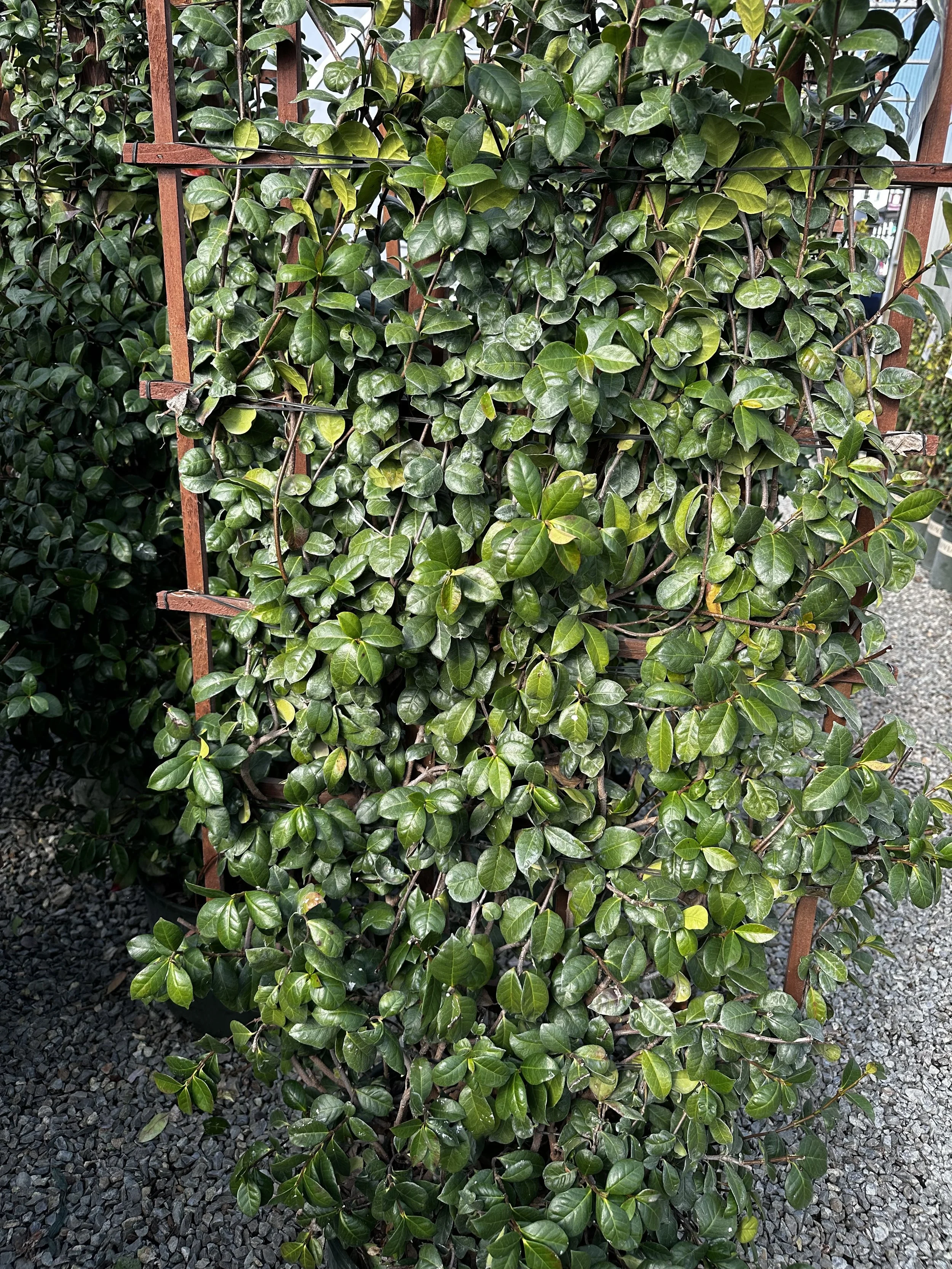 Grows 15–25 feet tall. Fast growing and softens fences and structures beautifully.