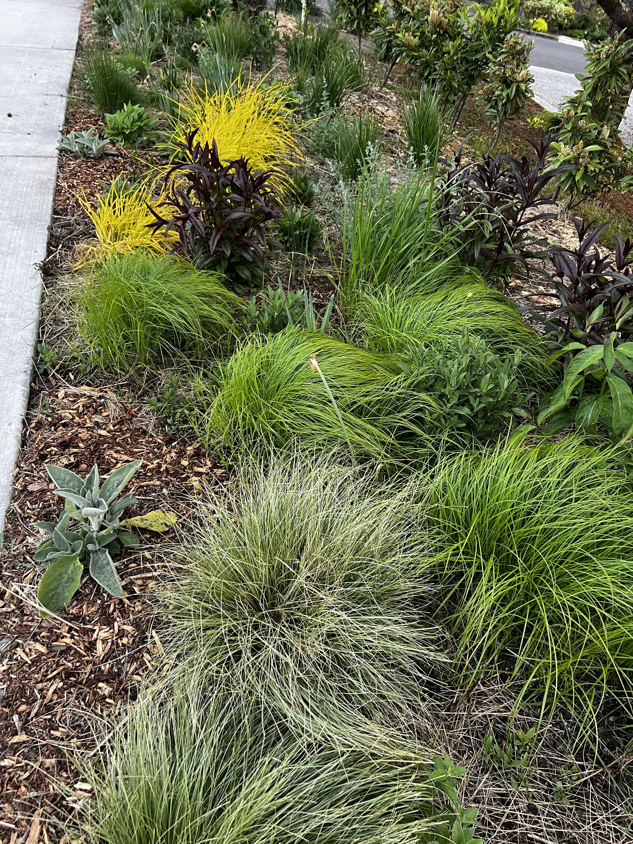 Mix of grasses, perennials, bulbs, and groundcover