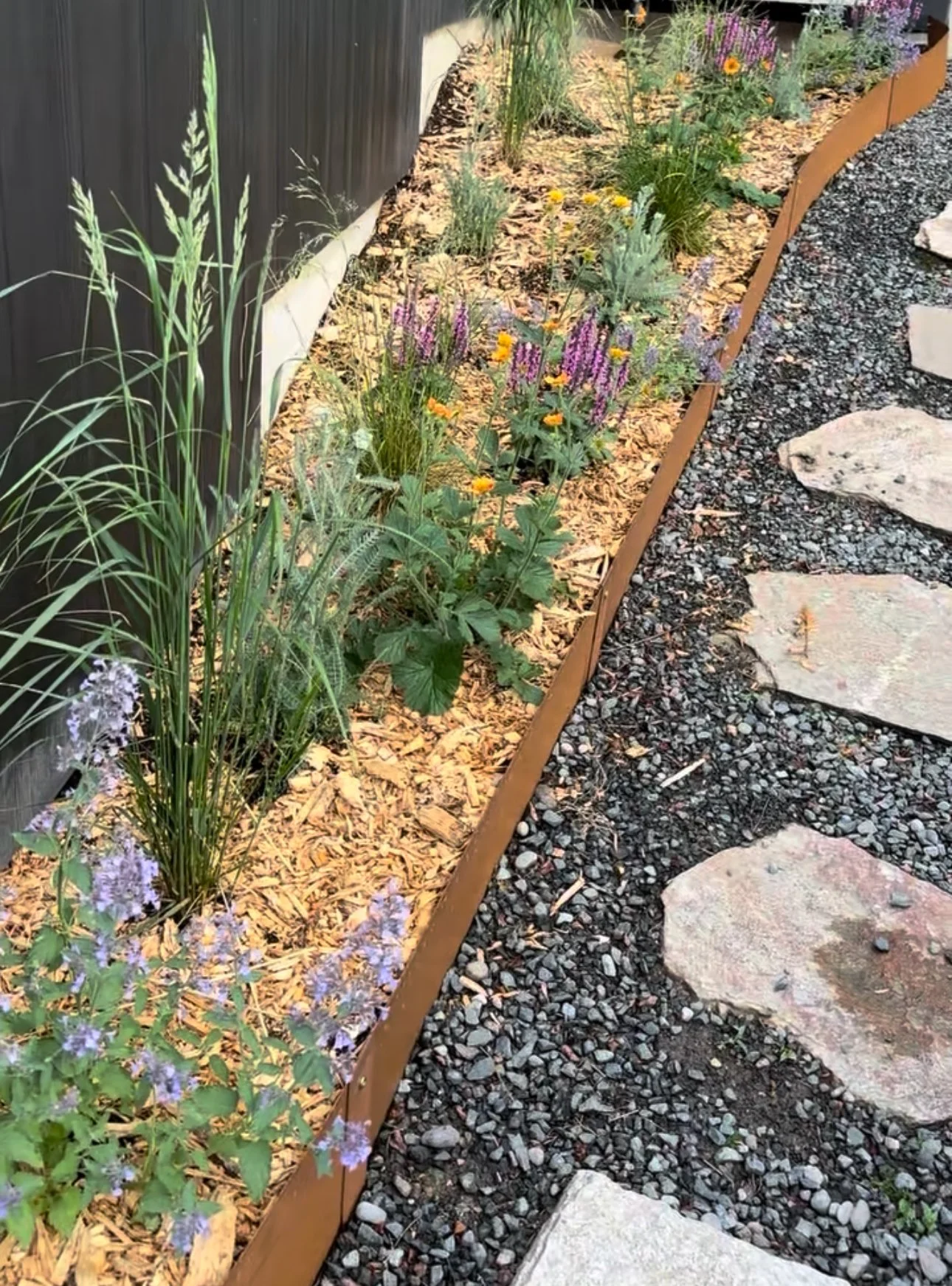 Corten Steel Edging (The "Bread" - provides the structure)
