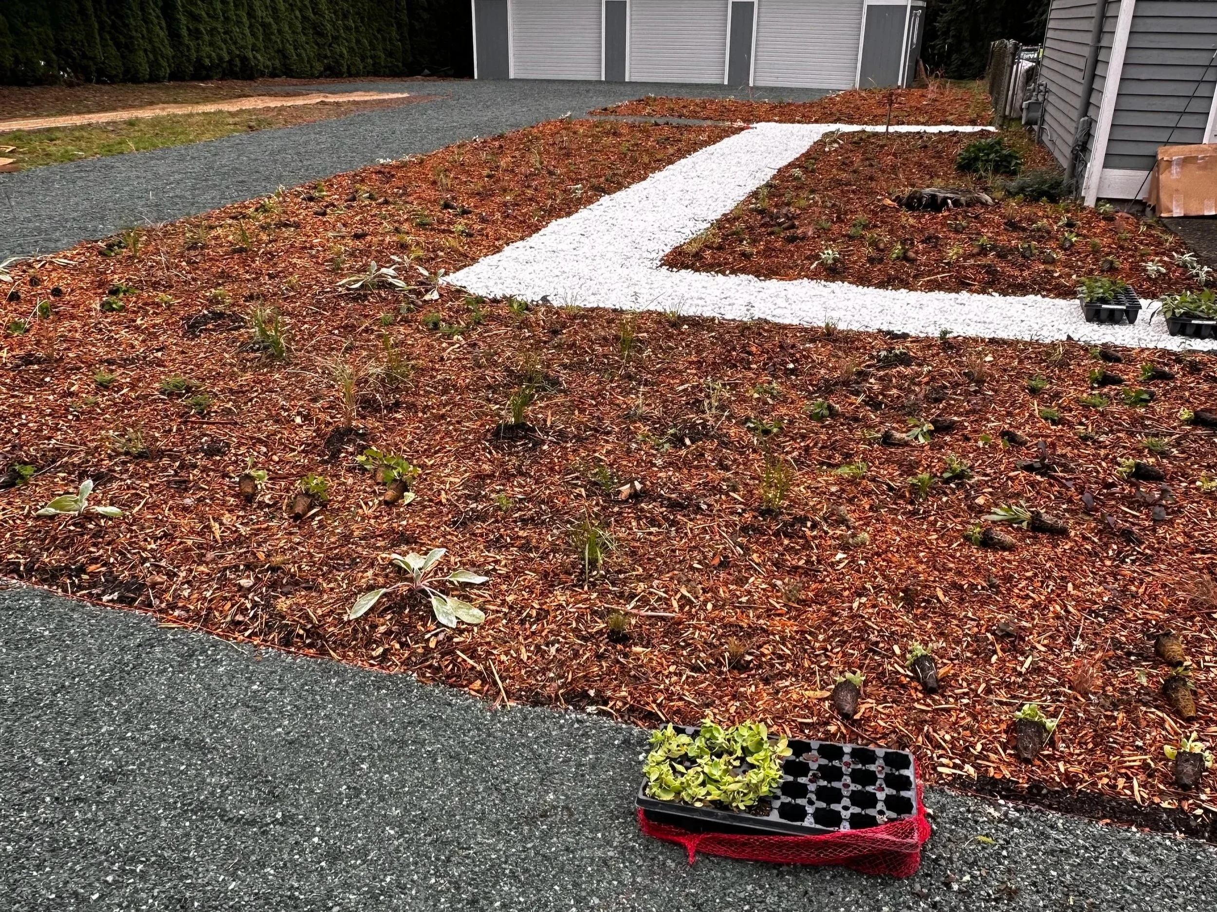 The Finish: Top dress the entire bed with Arborist Chips. You can get these for free by signing up for ChipDrop. These chips keep moisture in the soil and provide the perfect "Pacific Northwest forest floor" environment for your new plants.